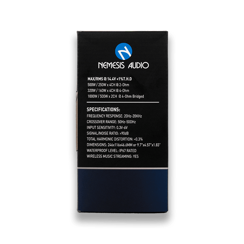 The Nemesis Audio NA-MR2000X4B is a rugged, high-performance 4-channel amplifier specifically engineered for the harshest environments. Whether you’re on the open water or hitting the trails, this IP67-rated waterproof amplifier ensures your soundtrack never stops. With integrated wireless music streaming, you can connect your device directly to the amp for a seamless, cable-free audio experience.